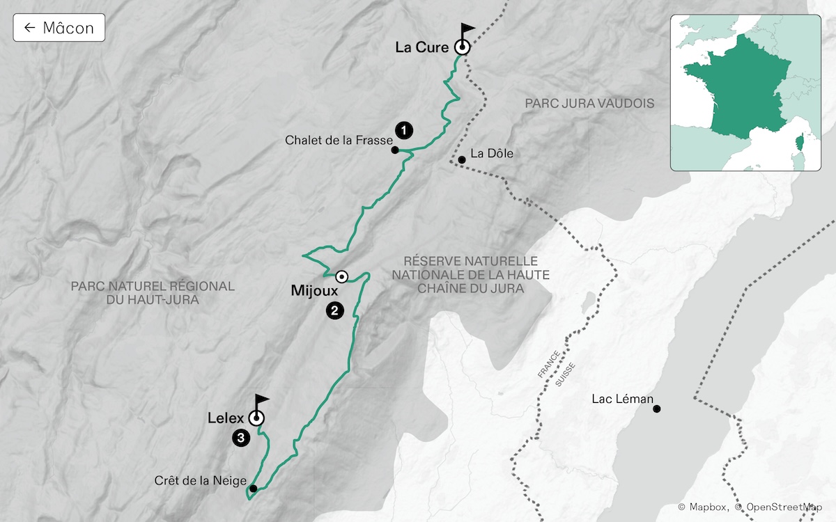 À noter : pour ce voyage, nous avions choisi d’arriver dans le Jura l’après-midi et faire une première étape plutôt courte. En arrivant plus tôt, il aurait aussi été possible de coupler les 2 premières étapes et rallier directement Mijoux depuis La Cure (ce qui fait une assez grosse journée !)
