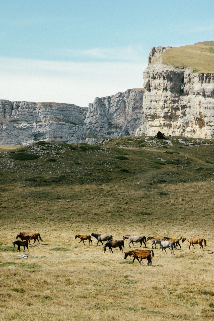 On suit les kerns avant une descente de 2 km assez raide dans les pierriers. Arrivés en haut du col de Rousset, le ciel s’ouvre enfin : la vue à 360° sur tout le massif est, comme annoncée, incroyable. On emprunte ensuite une ancienne voie taillée à flanc de falaise par les Romains avant de passer le col de Chironne et de terminer cette rando avec 4 kilomètres en pente douce au cœur de la forêt.